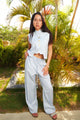 A vest and Pants duo in serene blue, accented with luxe golden buttons. Versatile enough for day, elevated enough for night — a tailored take on feminine ease.