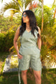 Crafted from lightweight, water-resistant fabric, the Flowté Set redefines summer motion. The cropped top features sharp side cuts that contour the waistline, while the structured cargo shorts add utility with feminine ease. A statement in both form and function made to move with you, made to elevate you.